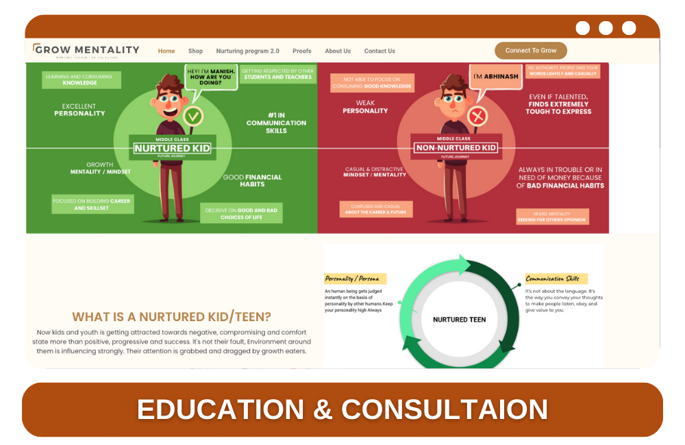 At Grow Mentality, we empower youth with the right skills and mindset to become self sufficient warrior ready to conquer life and rule their destiny. Alongside, our eCommerce services help entrepreneurs and brands launch, scale, and dominate the online marketplace with confidence and strategy. With ready to expand in other sectors soon.